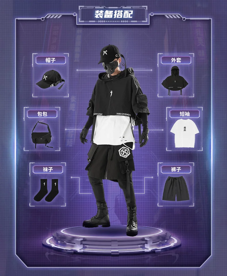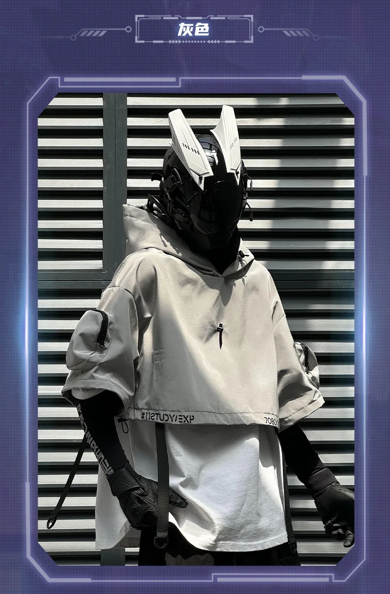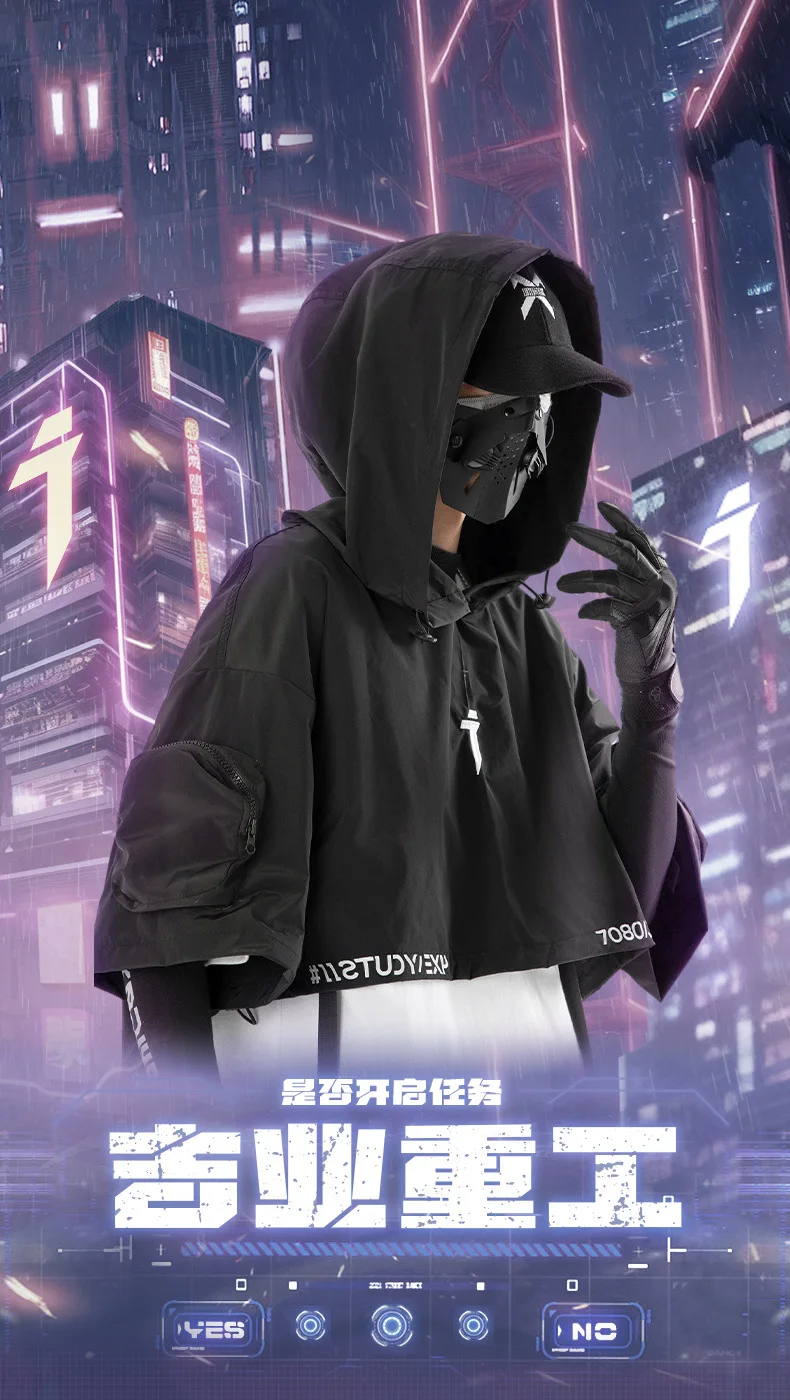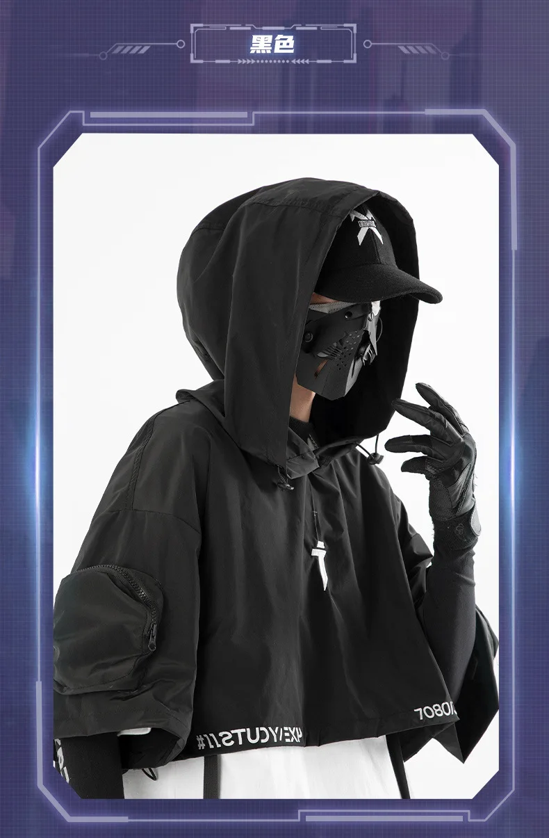 2024 Tactical Techwear Style Punk Hip Hop Short Jacket Hooded Cloak Men Women Functional High Street Casual Coat Cape
