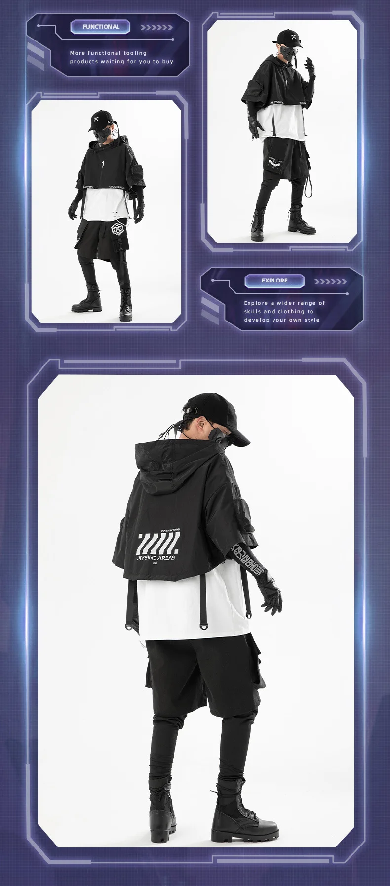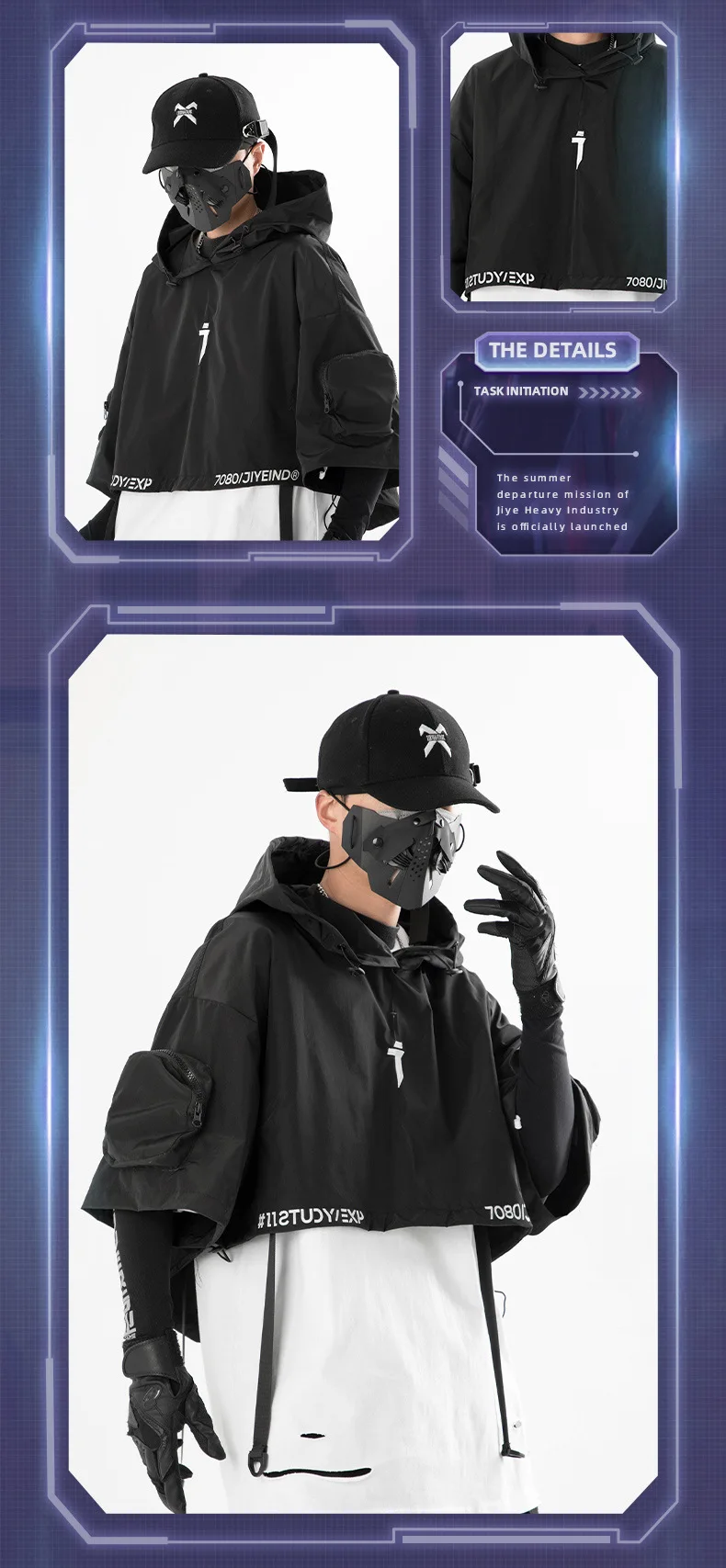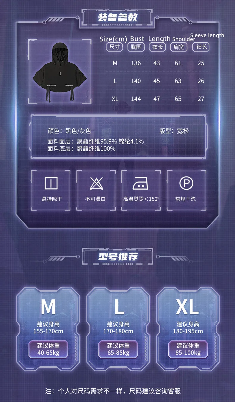 2024 Tactical Techwear Style Punk Hip Hop Short Jacket Hooded Cloak Men Women Functional High Street Casual Coat Cape