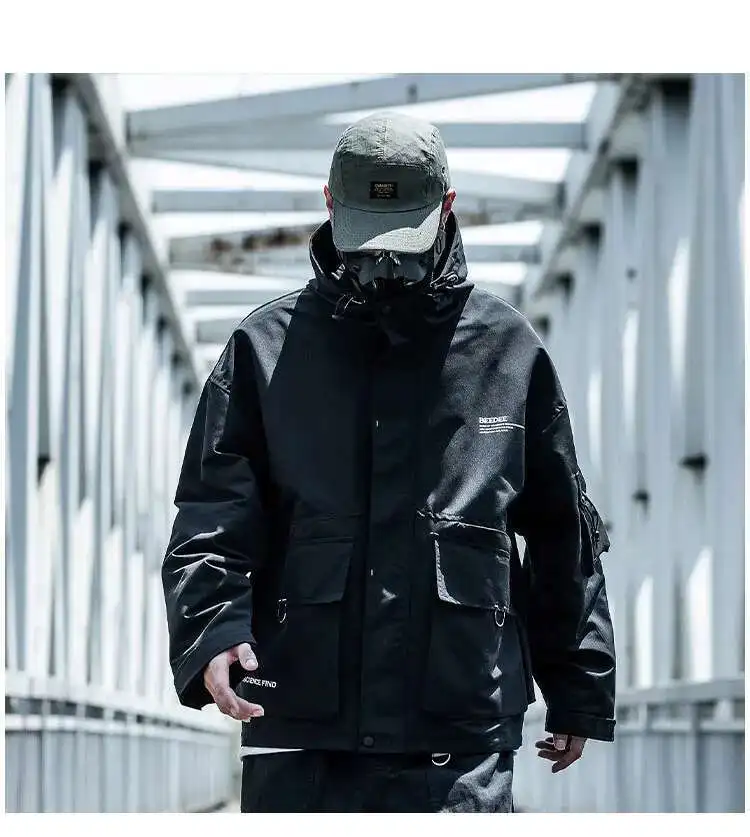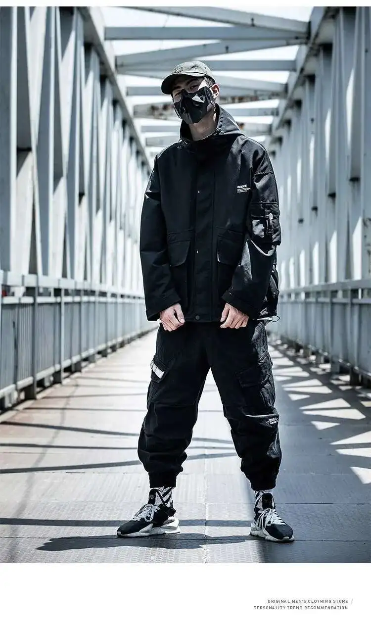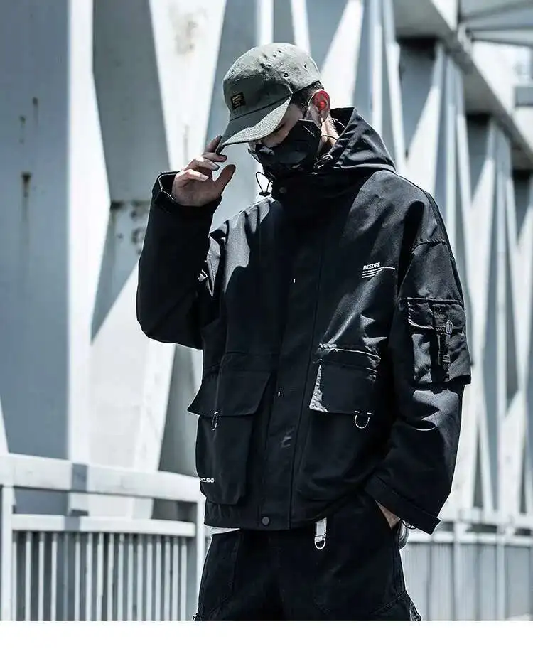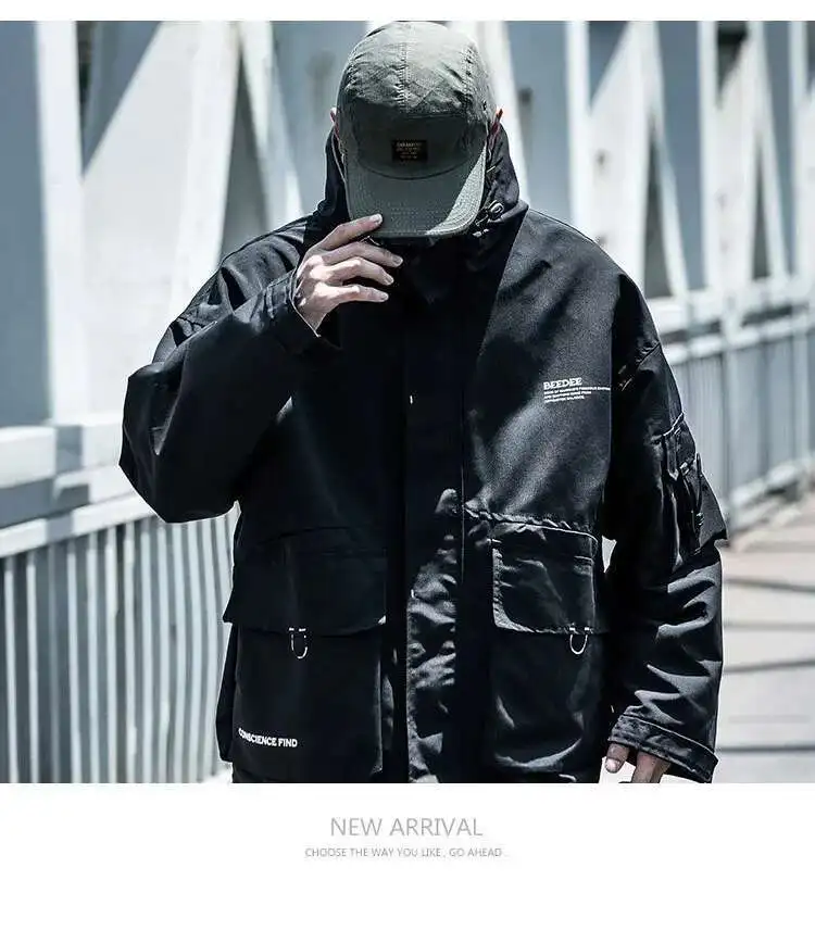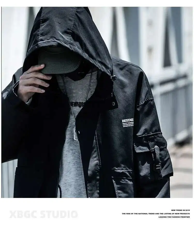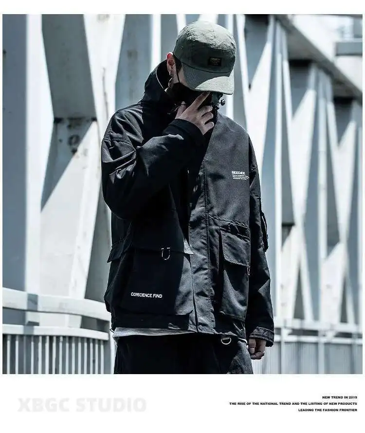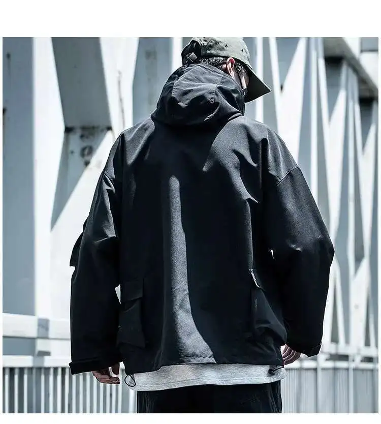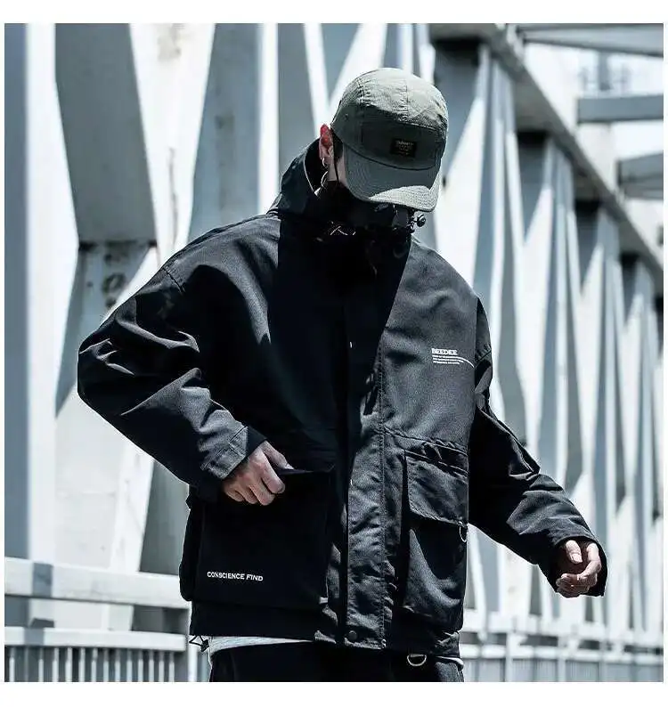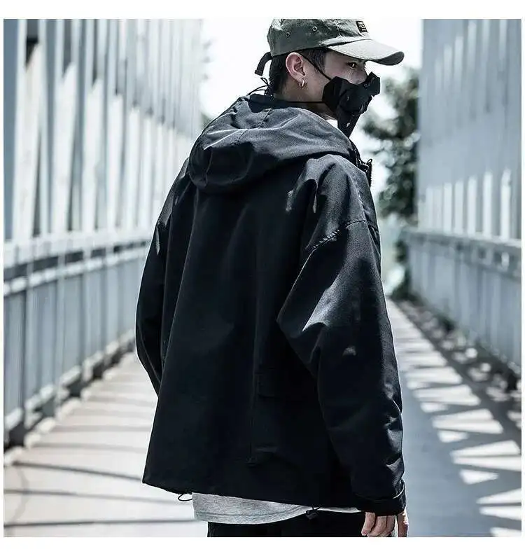 Spring Autumn New Tactical Dark Men'S Tide Loose Fashion Brand Ins Jacket Pockets Hooded Techwear Chic Hooded Coats HK0821